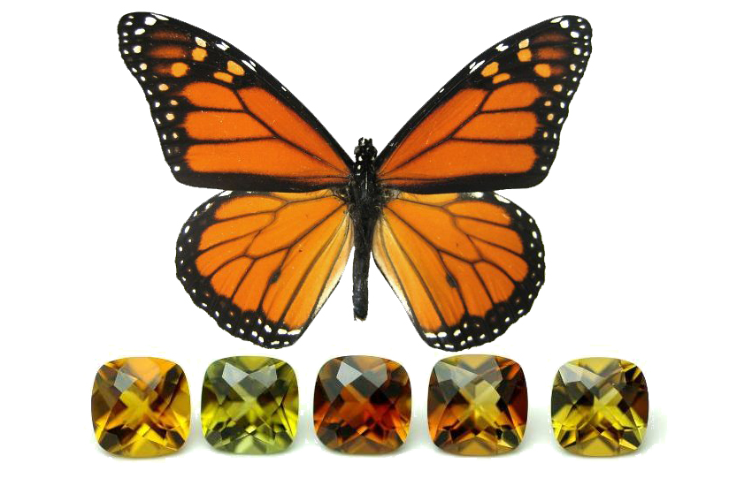 Savannah tourmaline colors usually range from yellowish Orange (6) to greenish Yellow (9).