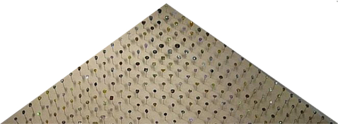 The Aurora Collection, which has a total weight of 267.45 carats and was named for the aurora borealis, was painstakingly put together over almost a quarter of a century. As it grew, Rodman and Bronstein arranged the stones in different patterns. The most famous was the Aurora Pyramid of Hope, which was on public display at the American Museum of Natural History in New York from 1989 to 2005 in the Morgan Hall of Gems. Another was the Aurora Butterfly of Peace, which has been shown at the Smithsonian Institute, and includes 240 natural, fancy colored diamonds in various sizes, shapes, and cuts, weighing 167 carats.