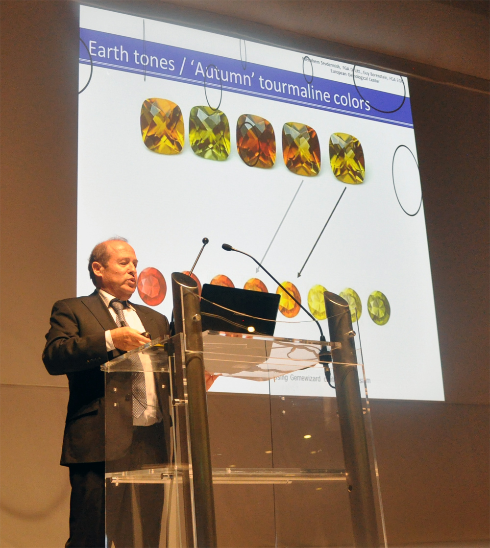 Gemewizard® founder Menahem Sevdermish addressing the gemological conference about earth colored tourmaline from Tanzania.