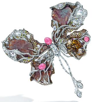 The bird of paradise brooch, by Van Cleef & Arpels, carrying the 96.2-carat Walska diamond in its beak. (Photo Credit: van Cleef & Arpels)